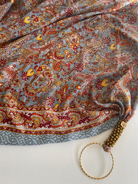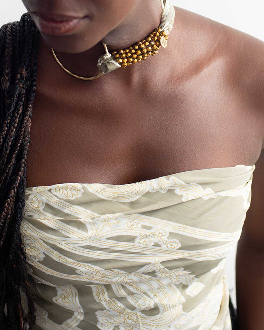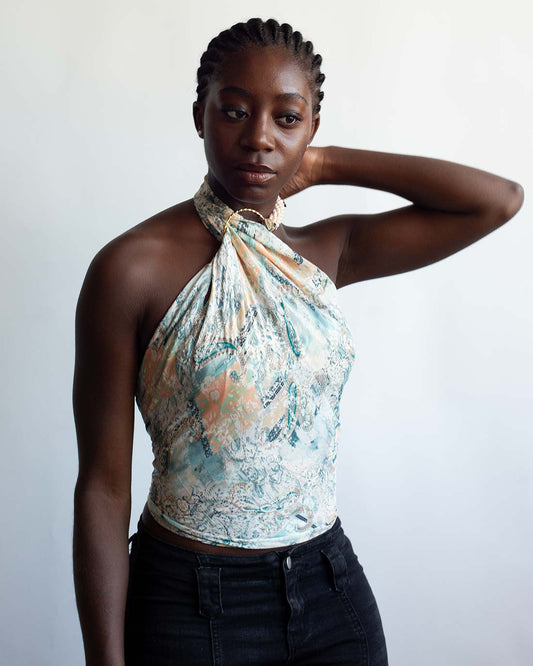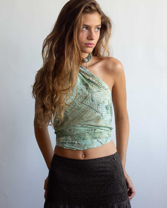 No somos hermanas, pero como si lo fuéramos, somos amigas desde siempre y llevamos más de 20 años trabajando juntas. Cuando terminamos la carrera hicimos un viaje a Capri. Allí compramos este pañuelo que hoy nos sirve de inspiración al evolucionarlo y convertirlo en una prenda mucho más versátil,