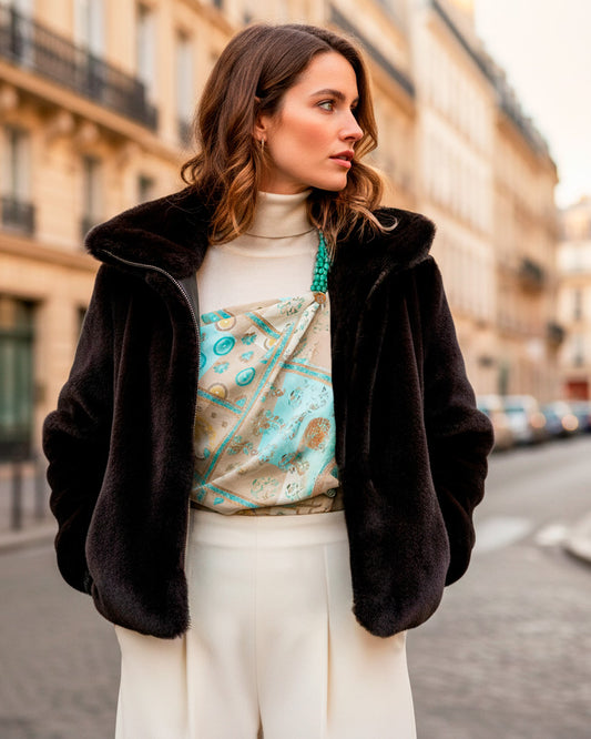 No somos hermanas, pero como si lo fuéramos, somos amigas desde siempre y llevamos más de 20 años trabajando juntas. Cuando terminamos la carrera hicimos un viaje a Capri. Allí compramos este pañuelo que hoy nos sirve de inspiración al evolucionarlo y convertirlo en una prenda mucho más versátil,